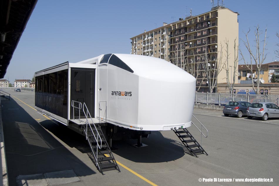 L’impresa ferroviaria Arena Ways si è dotata di un ufficio mobile, realizzato su un semirimorchio stradale, come base operativa nella stazione di Alessandria. (14/04/2010; foto Paolo Di Lorenzo / tuttoTreno)