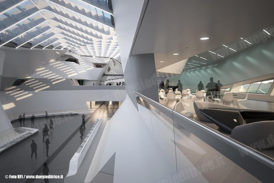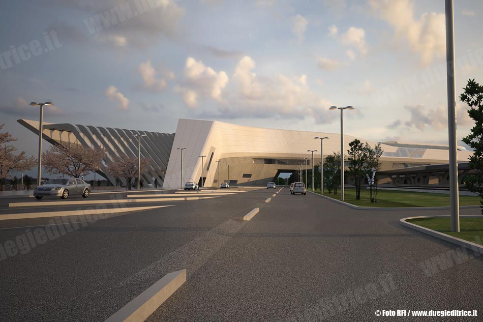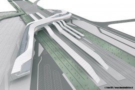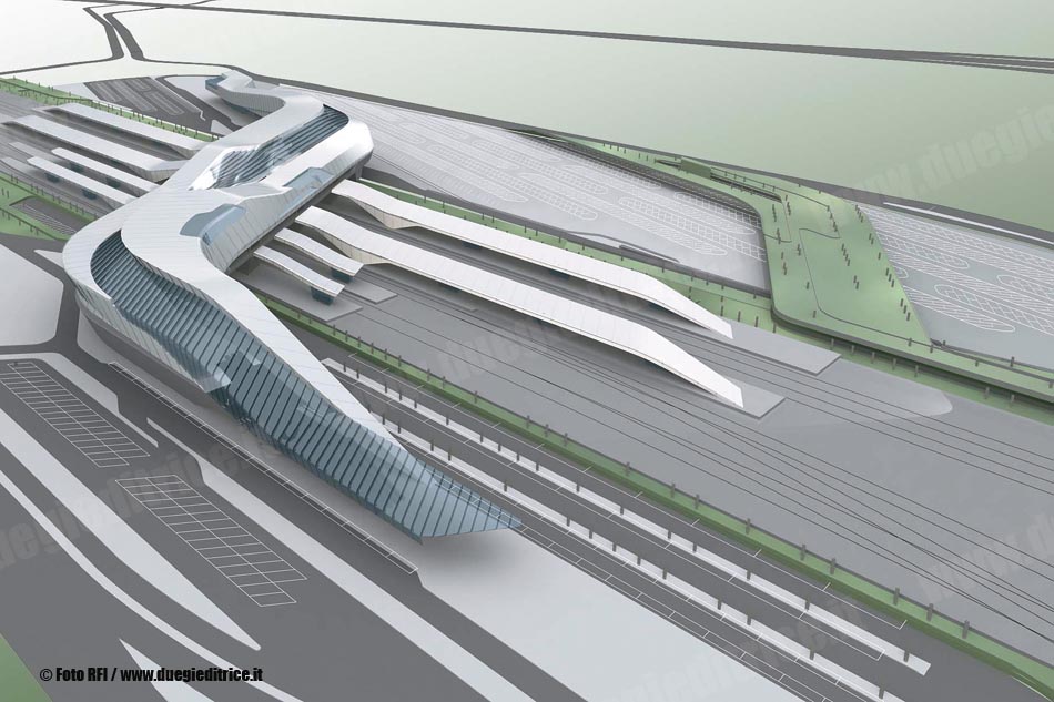 Il progetto è dell’architetto iraniano Zaha Hadid, vincitore nel 2003 del concorso internazionale bandito dal gruppo FS, prevede che una maestosa struttura a ponte, lunga 400 metri, scavalchi i binari, ricucendo le aree prima divise dai binari e dando continuità al paesaggio e alla rete viaria.