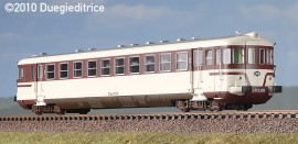 Non è una semplice ricoloriutura perché si sono dovuti modificare in modo pesante gli stampi della cassa e del telaio. Si tratta della ALn 773 3501, prototipo del fortunato gruppo di automotrici FS che Os.kar ha già riprodotto nella veste definitiva di prima serie, in più numerazioni. Il modello, venduto ovviamente in unità singola, è già nei negozi: il produttore ha eseguito le modifiche necessarie per riprodurre al meglio le differenze tra questa macchina e quelle di serie. La ALn 773 3501 è riprodotta nella bella coloritura d’origine, ma nel suo stato d’esercizio, quindi, oltre che per il collezionista, può ben figurare in esercizio regolare sul plastico. Anche questa ALn 773 è fornita di tutti gli accessori per modificare a piacere i frontali (con mantici aperti o chiusi).
