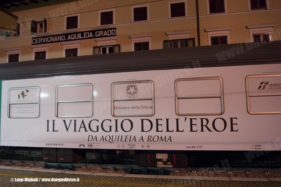 Sono passati ormai 90 anni da quando venne scritta una delle pagine più importanti della storia italiana, ovvero la celebrazione del Milite Ignoto con il viaggio del feretro in treno, partito da Aquileia il 29 ottobre 1921 e giunto a Roma il 2 novembre, e la successiva sepoltura al Vittoriano, monumento che da questo momento verrà indicato come “Altare della Patria”. Per ricordare quell’avvenimento, sabato 29 ottobre è partito dalla stazione di Cervignano-Aquileia-Grado il treno rievocativo denominato “Il Viaggio dell’Eroe”, un’iniziativa promossa dal Ministero della Difesa, in accordo con le Ferrovie dello Stato Italiane; l’organizzazione dell’evento è stata affidata alla società “Comunicare Organizzando” mentre l’idea della rievocazione è stata lanciata dall’Associazione Nazionale del Fante.