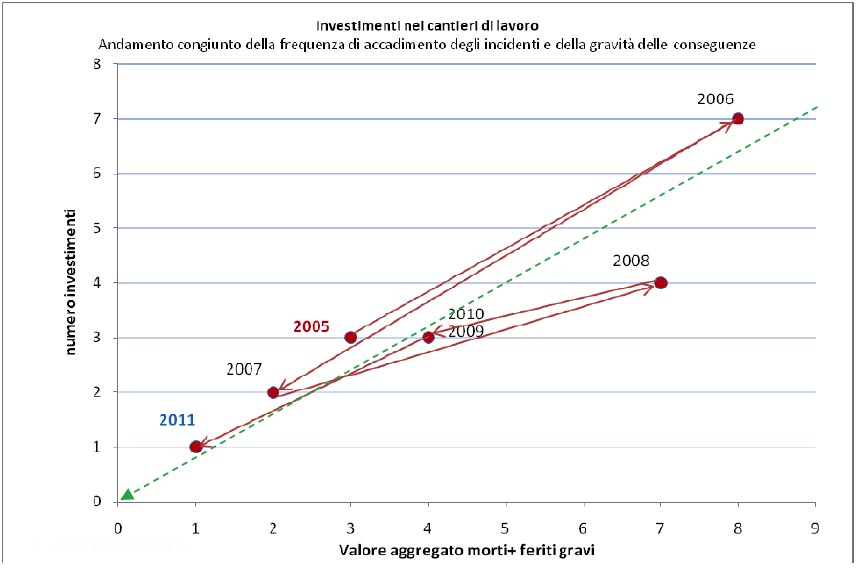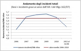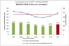 Nel grafico seguente è riportato l’andamento nel periodo 2005-2011 del totale degli incidenti gravi.