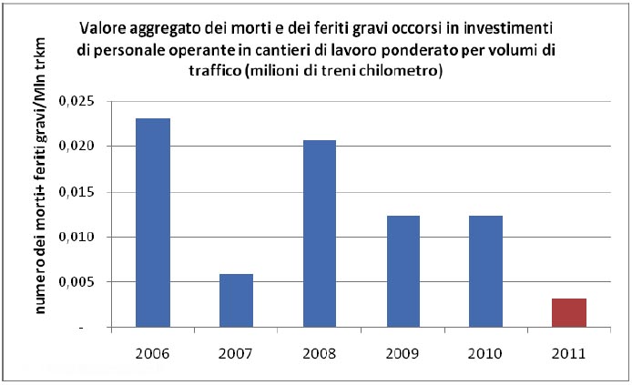 I valori di incidentalità registrati nel 2011 mostrano gli effetti positivi delle azioni messe in campo per garantire la sicurezza dei passeggeri durante le fasi di incarrozzamento (salita e discesa dal treno) e del personale operante nei cantieri di lavoro. A tali risultati devono aggiungersi la riduzione degli