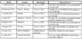 In considerazione del numero degli eventi e la particolarità del servizio nel quale detti materiali sono utilizzati è stato chiesto all’Impresa ferroviaria Trenitalia di chiarire le cause accertate e fornire elementi in ordine alle azioni poste in essere per contrastare i fenomeni rilevati.