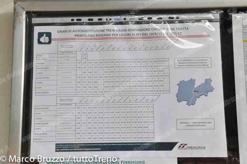 Dal 10 giugno all’8 luglio la tratta tra Bassano del Grappa e Primolano della linea per Trento รจ rimasta chiusa per lavori riguardanti la sostituzione di rotaie e traversine nella tratta da Primolano fino a San Nazario per un totale di 12 km e la sostituzione di 5 scambi nella stazione di Bassano del Grappa. I lavori sono stati eseguiti per conto di RFI da una ATI con capofila l’impresa dall’impresa lavori GCF con Ar.Fer, Gefer, Valditerra, Margaritelli, Impresa Pizzarotti e IPA Precast. A cura di Marco Bruzzo