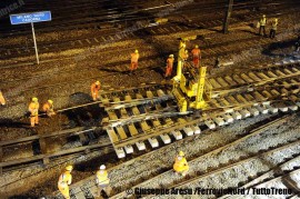 · saranno posate 6.800 nuove traversine e traversoni in cemento armato dal peso di 245 Kg ciascuna in sostituzione di altrettante in legno;